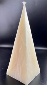 Pyramidenkerzen mit schöner Marmorierung: Höhe: 19 cm, Durchmesser: 10 cm, Gewicht ca. 325g, Brenndauer ca. 81 Stunden