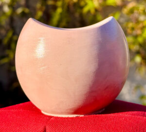 mit roten Farbpigmenten eingefärbt. Dadurch erhält diese kleine Vase einen Schimmer aus Altrosa